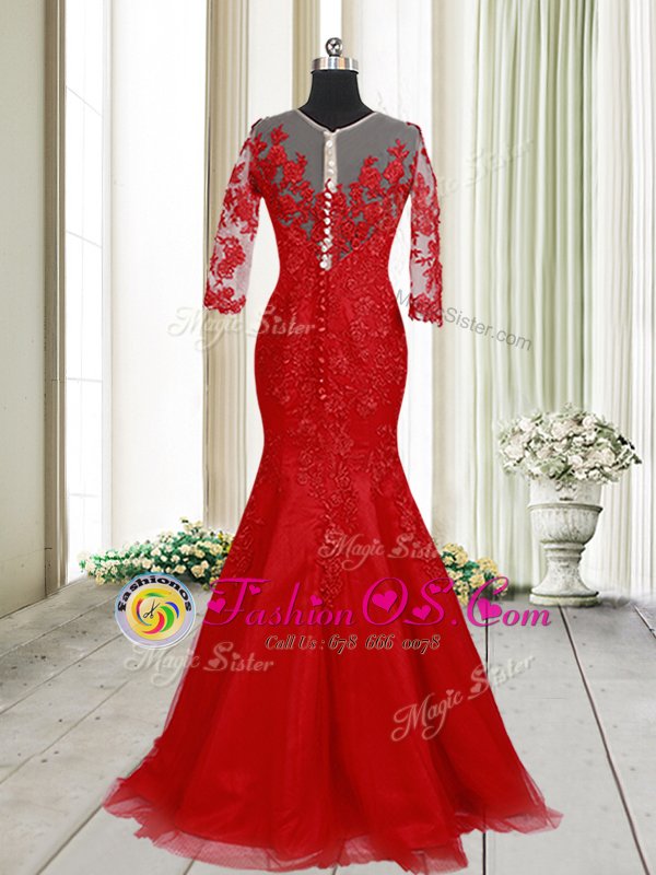 Home >  Prom Dresses >  Prom Dresses On Sale > Mermaid Clasp Handle V-neck Half Sleeves Homecoming Dress With Brush Train Lace Red Tulle