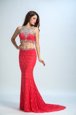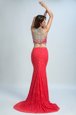 Home >  Prom Dresses >  Sexy Prom Dresses > Mermaid Coral Red Chiffon Zipper Scoop Sleeveless With Train Evening Dress Brush Train Beading
