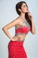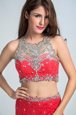 Mermaid Coral Red Chiffon Zipper Scoop Sleeveless With Train Evening Dress Brush Train Beading