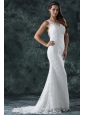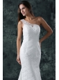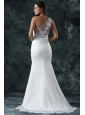 Mermaid Embroidery One Shoulder Lace Sweep Train Wedding Dress