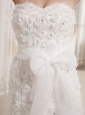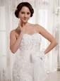 This gorgeous sweetheart white mermaid wedding dress is highlighted by the rose pattern adorned all over the skirt, which makes the dress full of" fragrance". A wide sash with a large bowknot in the middle that adds more glitz to the luxurious dress. If you are looking for your dream wedding dress with royal atmosphere, this one is exactly what you want.