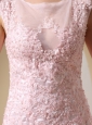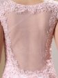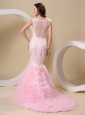You will definitely be the belle of the ball in this gorgeous nymphlike style dress. This perfect scoop neckline and refined appliques throughout the top to hips. The highlight of the dress is the sheer tulle on the top make you more alluring. The floor-length skirt hugs your hips and flares out slightly from the knees in a tulle besieged mermaid style, leaving a sweeping train in the back. Just beautiful!