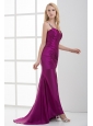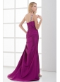 Mermaid Fuchsia One Shoulder Brush Train Beading Taffeta Ruching Prom Dress