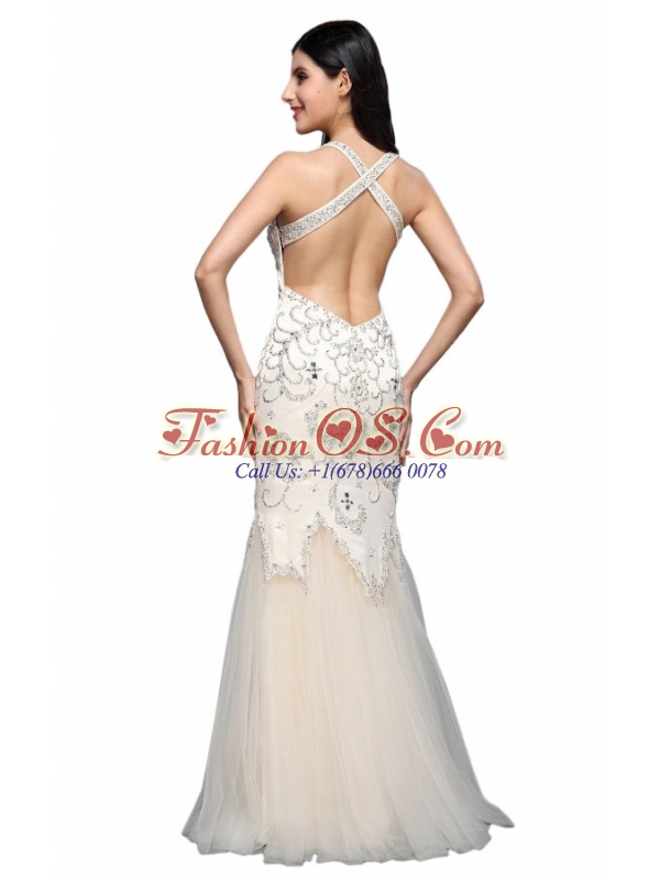 Home >  Wedding Dresses >  Perfect Wedding Dresses > Mermaid Halter Floor-length Tulle Criss Cross Wedding Dress