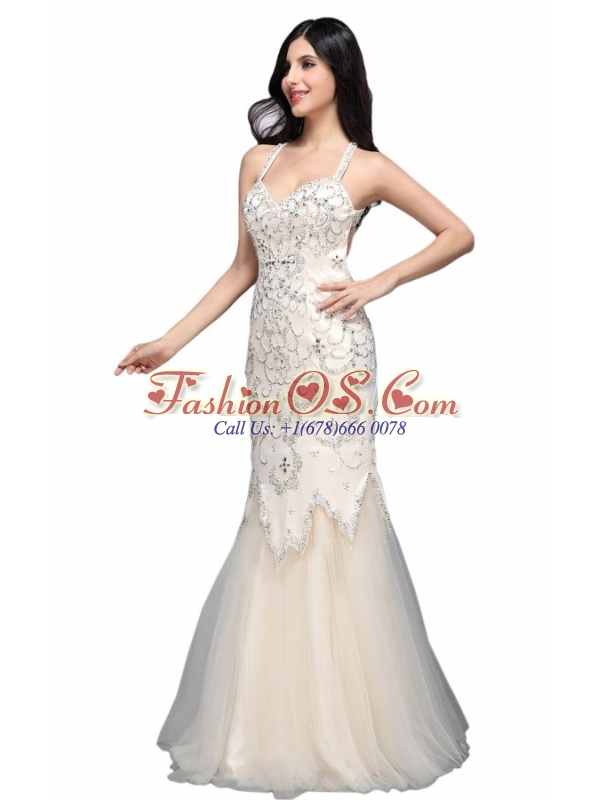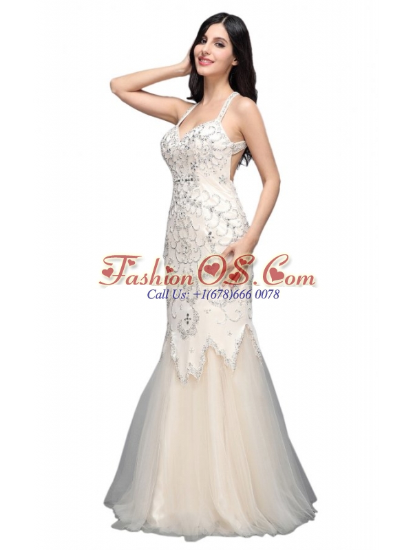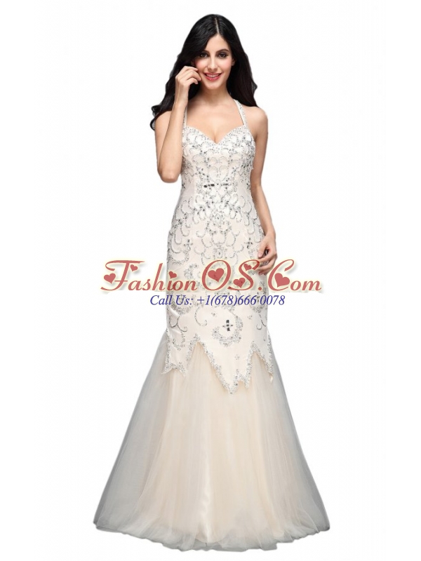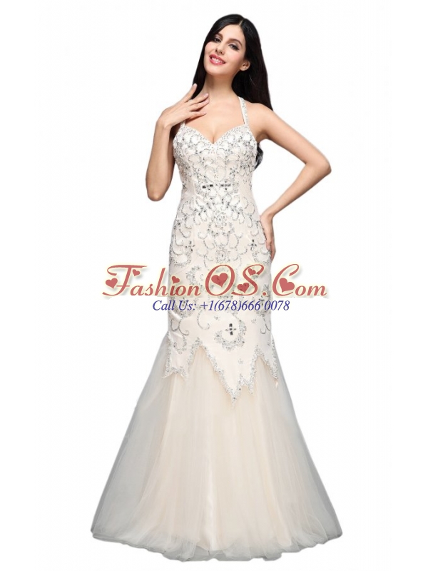Mermaid Halter Floor-length Tulle Criss Cross Wedding Dress