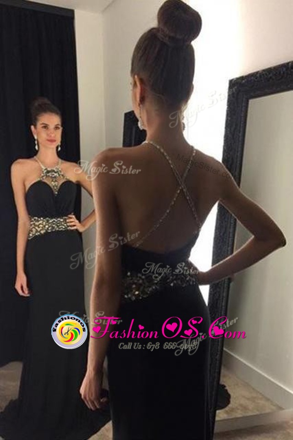 Mermaid Halter Top Satin Sleeveless With Train Dress Like A Star Brush Train and Beading