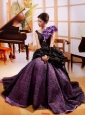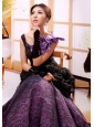 Home >  Prom Dresses >  Elegant Prom Dresses > Mermaid Hand Made Flowers Decorate Shoulder Straps Stylish Celebrity Prom Gowns With Black And Purple