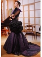 Mermaid Hand Made Flowers Decorate Shoulder Straps Stylish Celebrity Prom Gowns With Black And Purple