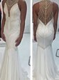 Mermaid High-neck Sleeveless Sweep Train Criss Cross Prom Evening Gown White Tulle