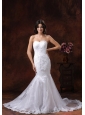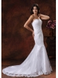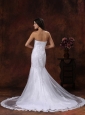 Silhouette: Mermaid Neckline: Strapless Waist: Fitted Hemline/Train: Brush Train Sleeve Length: Sleeveless Embellishment: Embroidery Back Detail: Lace-up Fully Lined: Yes Built-In Bra: Yes Fabric: Lace Shown Color: White(Color & Style representation may vary by monitor.) Wedding Venues: Garden, Beach, Outdoor, Church, Hall Season: Spring, Summer, Fall, Winter
