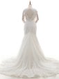 Mermaid Lace With Train White Wedding Dresses Scalloped Long Sleeves Brush Train Zipper