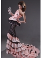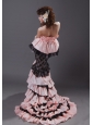 Mermaid Light Pink and Black Taffeta and Lace Appliques Brush Train Ruffled Layers 2013 Prom / Evening Dress