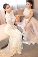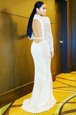 Mermaid Long Sleeves White Prom Gown Sweep Train Backless