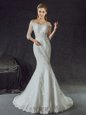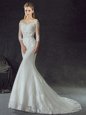 Home >  Wedding Dresses >  Elegant Wedding Dresses > Mermaid Off the Shoulder White Lace Up Wedding Dress Lace and Appliques Half Sleeves With Brush Train