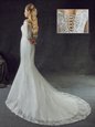 Mermaid Off the Shoulder White Lace Up Wedding Dress Lace and Appliques Half Sleeves With Brush Train