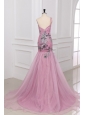 Home >  Prom Dresses >  Beautiful Prom Dresses > Mermaid One Shoulder Appliques Organza Court Train Pink Prom Dress