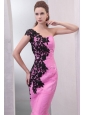 Home >  Prom Dresses >  Fashionable Prom Dresses > Mermaid One Shoulder Rose Pink Appliques and Ruching Brush Train Prom Dress