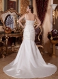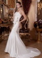 Home >  Wedding Dresses >  Elegant Wedding Dresses > Mermaid One Shoulder Satin Wedding Dress Hot With Lace and Feather Decorate