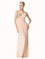 Mermaid One Shoulder Sleeveless Prom Evening Gown Floor Length Beading and Ruching Peach Chiffon