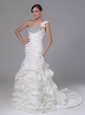 Home >  Wedding Dresses >  Latest Wedding Dresses > Mermaid One Shoulder Wedding Dress In Arroyo Grande California With Ruched Bodice Ruffled Layers