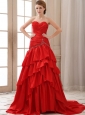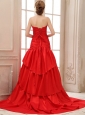 One can find no words that is suitable enough to describe the feeling when seeing this dress. The dress is so sassy and stunning that you will surely be eye-catching at your party. This shining mermaid prom dress features a sweetheart neckline and criss-cross ruched bodice. Floor-length with brush train and layered skirt shows your beauty and curve. Don't hesitate to take it home!