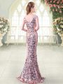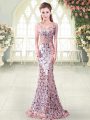 Mermaid Prom Evening Gown Pink V-neck Sequined Sleeveless Floor Length Zipper