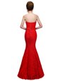 Mermaid Red Strapless Neckline Lace Evening Party Dresses Sleeveless Lace Up