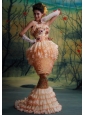 Mermaid Ruffled Layers Organza Beading Brush Train 2013 Prom Dress