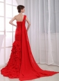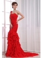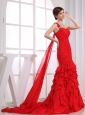 Home >  Prom Dresses >  Popular Prom Dresses > Mermaid Ruffles Chiffon Watteau Red One Shoulder Prom Dress