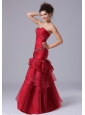 Mermaid Ruffles Red Sweetheart Organza 2013 Prom Dress With Beading