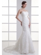 Mermaid Sash Sweetheart Lace Brush Train Wedding Dress
