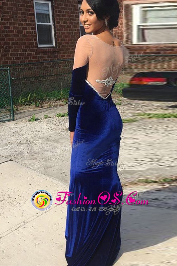 Mermaid Satin Long Sleeves Prom Dresses Sweep Train and Lace