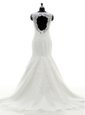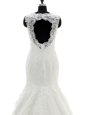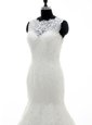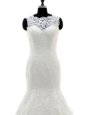 Silhouette: Mermaid Neckline: scalloped Sleeve Length: sleeveless Hemline/Train: with train Back Detail: clasp handle Embellishment: lace,appliques Fabric: tulle,lace Shown Color: white(Color & Style representation may vary by monitor.) Occasion: wedding party Season: spring,summer,fall,winter Fully Lined: Yes Built-In Bra: Yes