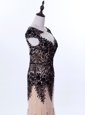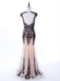 Mermaid Scoop Cap Sleeves Backless Evening Dresses Black and In for Prom and Party with Appliques Brush Train