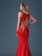 Mermaid Scoop Red Side Zipper Prom Gown Appliques Sleeveless With Brush Train