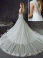 Mermaid Scoop With Train Side Zipper Wedding Gowns White and In for Wedding Party with Lace and Appliques Chapel Train