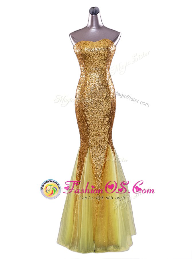 Mermaid Sequined Strapless Sleeveless Zipper Sequins Celebrity Dress in Gold