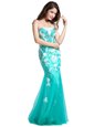 Mermaid Sleeveless Floor Length Beading and Appliques Zipper Prom Evening Gown with Turquoise