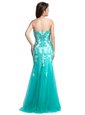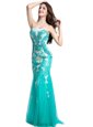 Home >  Prom Dresses >  Modest Prom Dresses > Mermaid Sleeveless Floor Length Beading and Appliques Zipper Prom Evening Gown with Turquoise