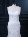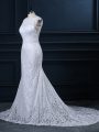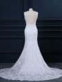 Mermaid Sleeveless White Bridal Gown Brush Train Backless