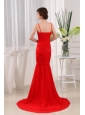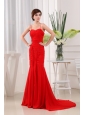 Home >  Prom Dresses >  Elegant Prom Dresses > Mermaid Spaghetti Straps Chiffon Brush/Sweep Ruched Prom Dress Red