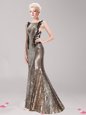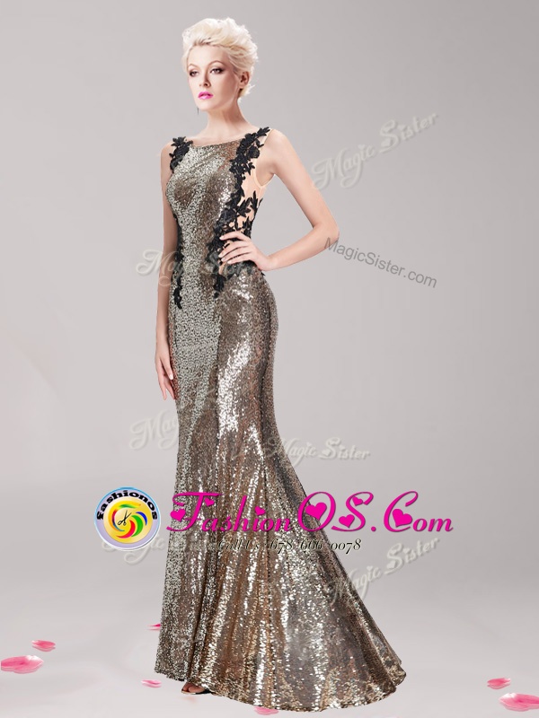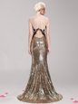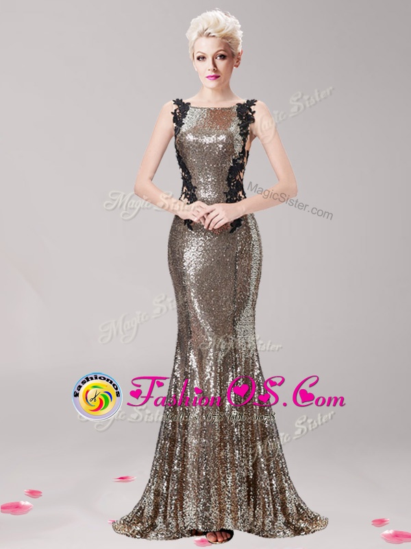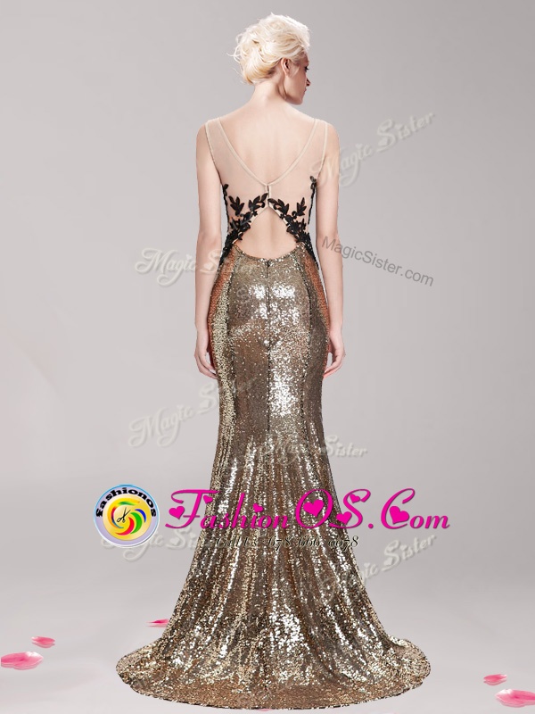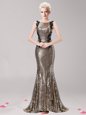 Mermaid Square Sleeveless Sequined Prom Dress Appliques and Sequins Brush Train Clasp Handle
