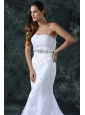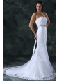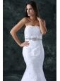 Mermaid Strapless Beading and Lace Tulle and Taffeta Wedding Dress with Court Train