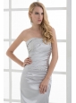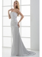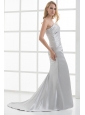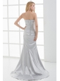 Home >  Prom Dresses >  Discount Prom Dresses > Mermaid Strapless Beading and Ruching Brush Train White Prom Dress