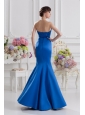 Home >  Prom Dresses >  Popular Prom Dresses > Mermaid Strapless Blue Prom Dress with Ruching and Beading