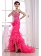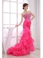 Home >  Prom Dresses >  Popular Prom Dresses > Mermaid Strapless Brush / Sweep Beading Organza Prom Dress Hot Pink
