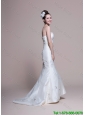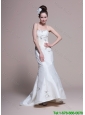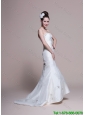 Mermaid Strapless Brush Train Romantic Wedding Dresses with Appliques