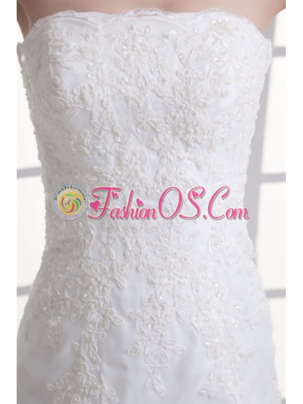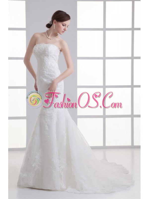 Mermaid Strapless Lace Court Train Organza Wedding Dress