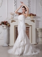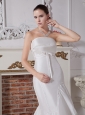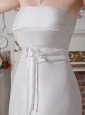 Silhouette: Mermaid Neckline: Strapless Waist: Fitted Hemline/Train: Brush Train Sleeve Length: Sleeveless Embellishment: Belt Back Detail: Zipper-up Fully Lined: Yes Built-In Bra: Yes Fabric: Satin and Taffeta Shown Color: White(Color & Style representation may vary by monitor.) Wedding Venues: Garden, Beach, Outdoor, Church, Hall Season: Spring, Summer, Fall, Winter