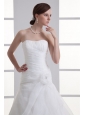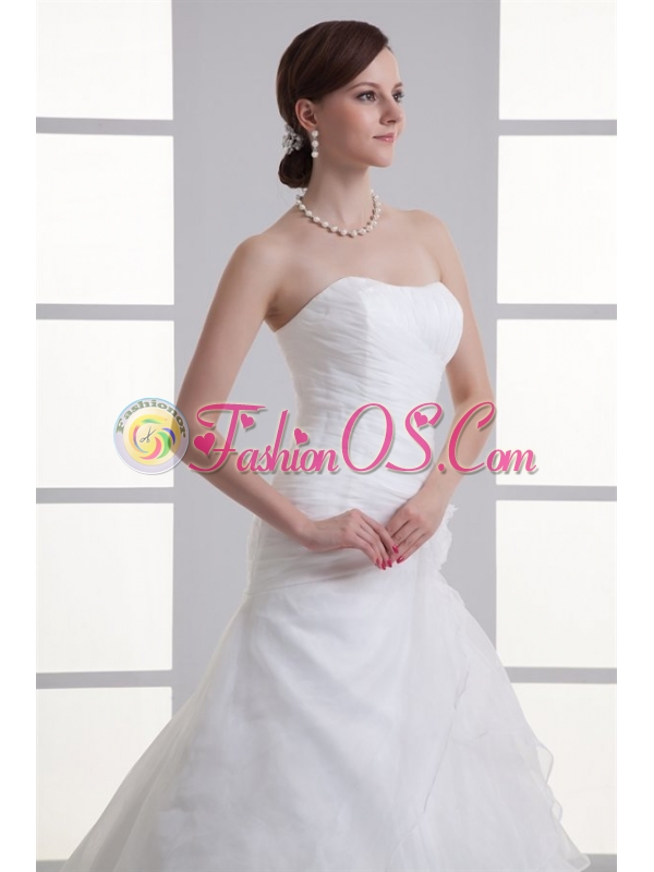 Mermaid Strapless Ruching Ruffles Organza Chapel Train Wedding Dress